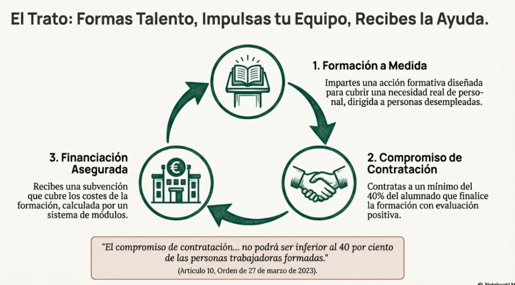 En todos los casos, es obligatorio asumir un compromiso de contratación mínimo del 40 % de las personas que finalicen la formación.