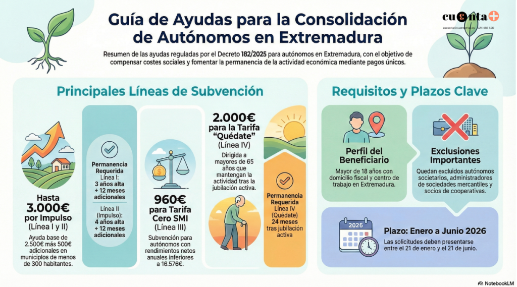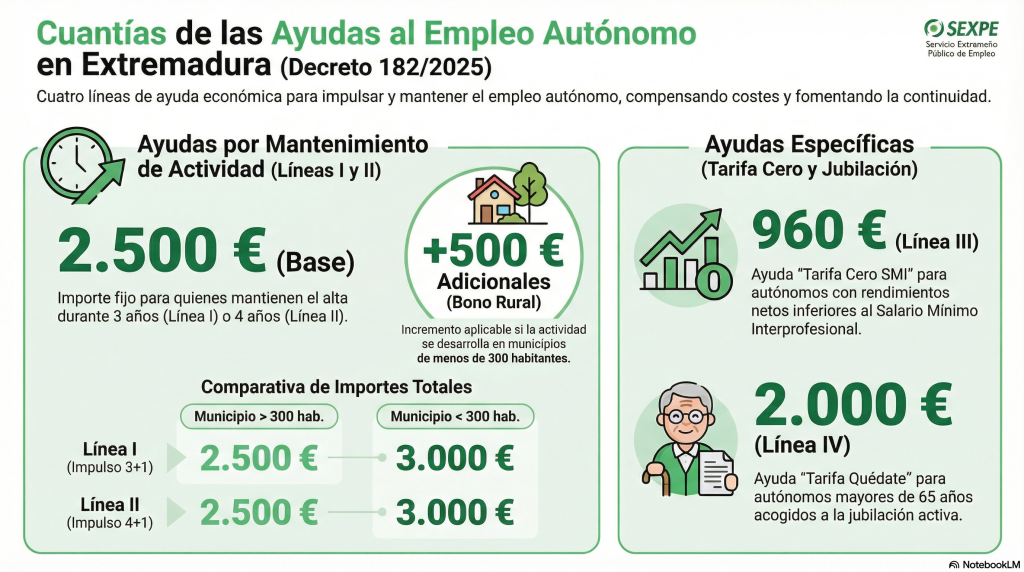 reguladas por el Decreto 182/2025, tienen como objetivo incentivar el mantenimiento de la actividad como autónomo y compensar los costes sociales de los trabajadores.