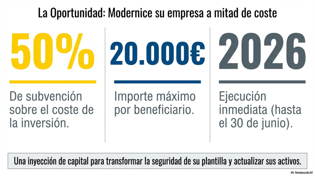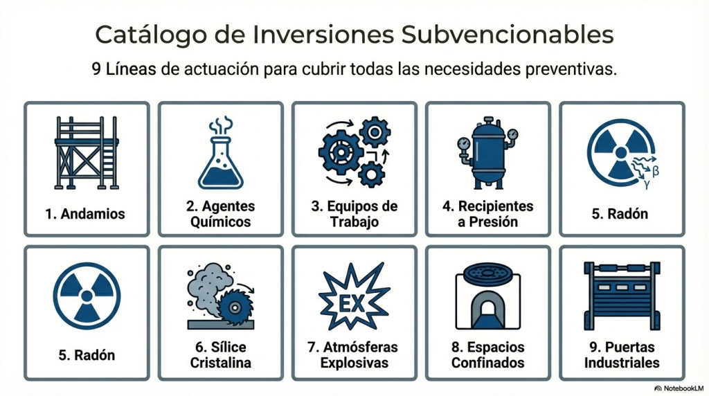 - Equipos de Trabajo: Adaptación o sustitución de maquinaria de más de 10 años de antigüedad.