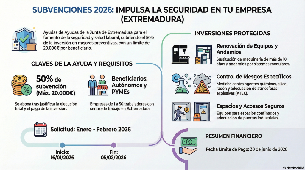 Presentamos un resumen sobre ayudas para el fomento de la seguridad y salud en el trabajo en Extremadura para el año 2026.